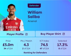 Arsenal have a great run of fixtures to start the season and you will want at least 1 of their defenders to start the season and although Gabriel is popular i like Saliba.