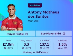 When Antony first arrived he was excellent but tailed off a bit as the season went on.