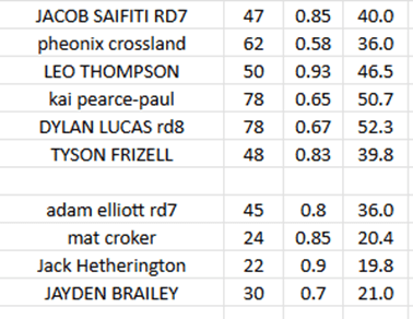 While Leo can theoretically do this and should be matching this as the main forward, he has not shown to me that he can do this consistently. He will of course get these tackles and the odd offload but when you are buying someone of this prototype, he really has to be great across the board in tackles and run metres.